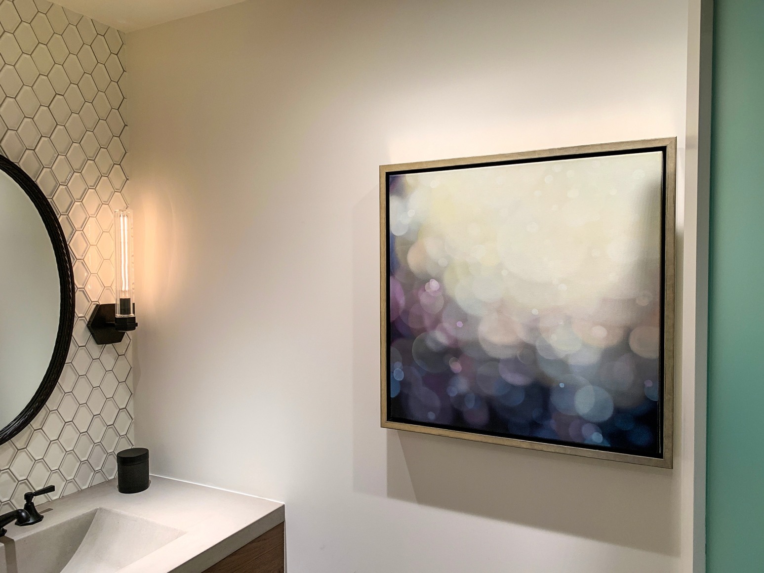 Jenn SHIFFLET, Lavender Cobalt Drop, oil on canvas, 24 x 24 inches