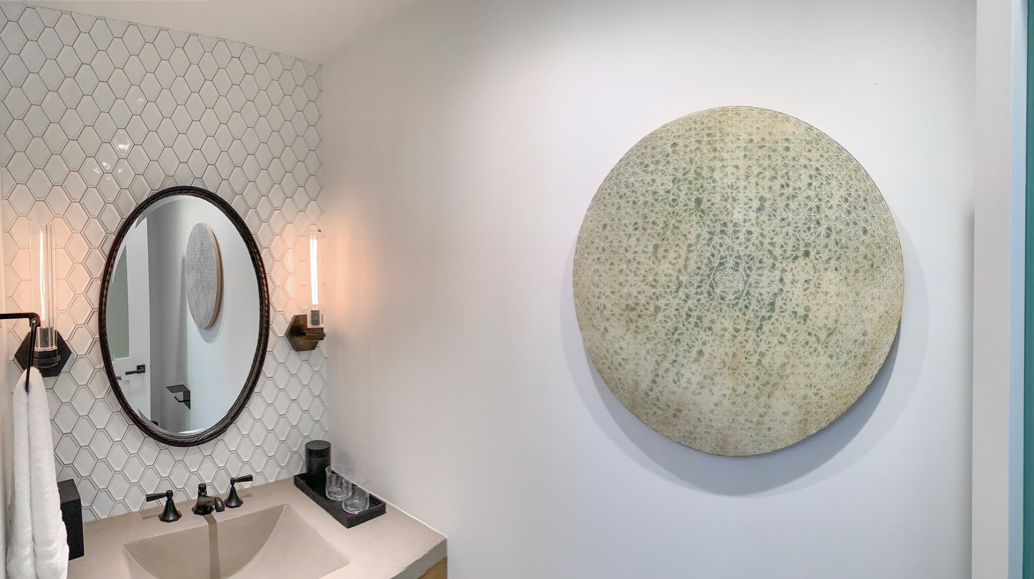 Carrie Ann PLANK, Durchsicht Round 1, polychrome woodcut on wood, 26.5 inch diameter
