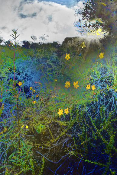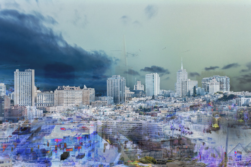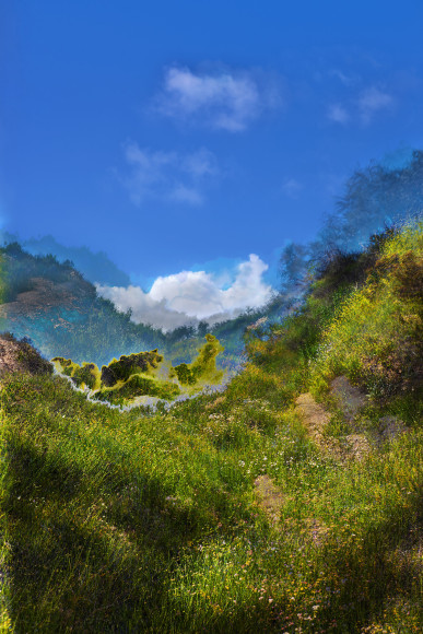 Paxton’s kaleidoscopic spectrum can evoke the damp cool of twilight or the dry heat of Santa Ana winds like a thermochromic imprint of the found landscape. His digital layers are a reimagining of the automobile lacquers, resins, and synthetic pigments that first put California on the map with the chemical colors and licked textures of Finish Fetish.